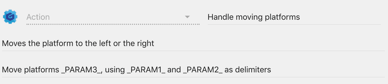 Parameters are automatically extracted from the events by GDevelop. GDevelop will understand which objects, groups and behaviors you're using - as well as the object types.