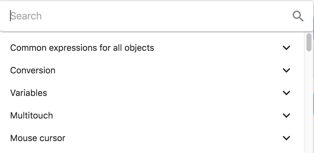 When you click the "expression" editor icon, you can search for all of the available expressions. The expressions are sorted into categories.
