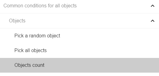 Add a new empty event. Add the condition "Common conditions for all objects", "Objects", "Objects count".